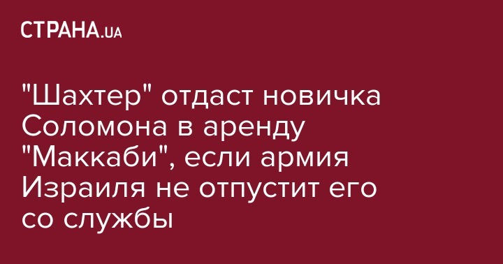 Во время переговоров "Шахтера" о трансфере полузащитника "Маккаби" Манора Соломона был поднят вопрос касательно службы 19-летнего игрока в Армии обороны Израиля. Об этом сообщает one.co.il.