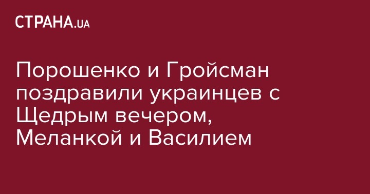 "Боже благий, Боже щедрый, Дай нам, Боже, год счастливый! Щедрый вечер, Святой вечер, Всем людям на здоровье! Самые теплые поздравления с праздником Меланки и Василия! Любви, семейного уюта и щедрого нового года всем украинцам! ", - отметил Порошенко в Facebook.