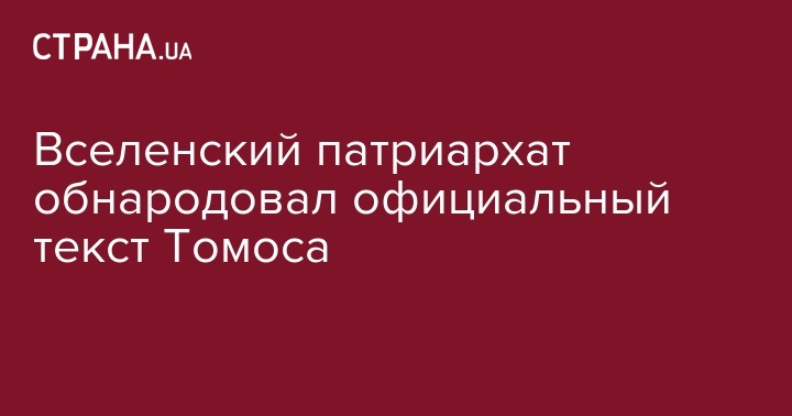 Вселенский патриархат обнародовал текст Томоса Православной церкви Украины, который появился на официальном сайте Вселенского патриархата.