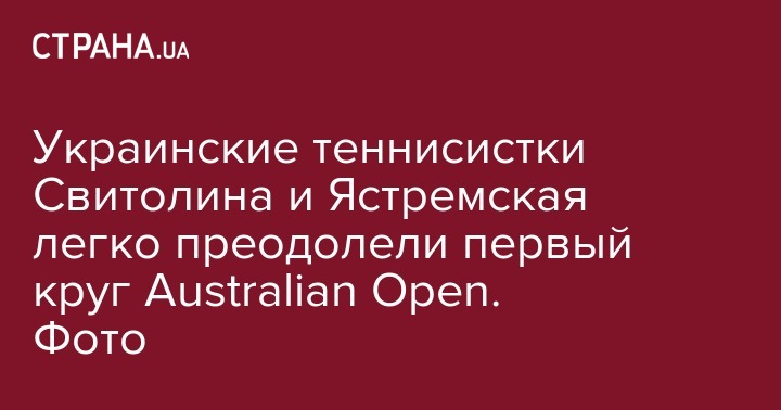 Следом за Лесей Цуренко, которая успешно преодолела стартовый круг Australian Open, первый из турниров серии "Большого шлема" в 2019 году с общим призовым фондом 62,5 миллиона долларов, одесситка Элина Свитолина и Даяна Ястремская также уверено прошли первый круг соревнований. Об этом сообщает пресс-служба Федерации тенниса Украины в Facebook.