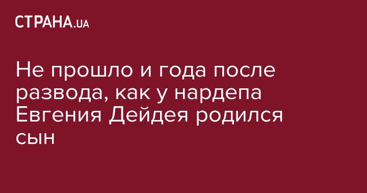 У нардепа от "Народного фронта" Евгения Дейдея, который развелся весной прошлого года и сразу показал новую девушку, родился сын. Об этом в Facebook 15 января заявила мама ребенка, новая жена нардепа Дарина.