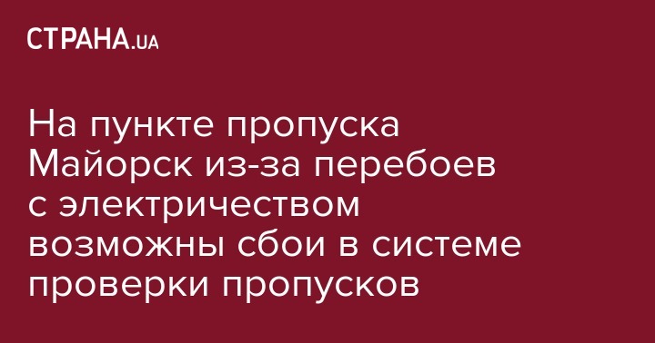 На пункте пропуска Майорск из-за перебоев с электричеством возможны сбои в системе проверки пропусков