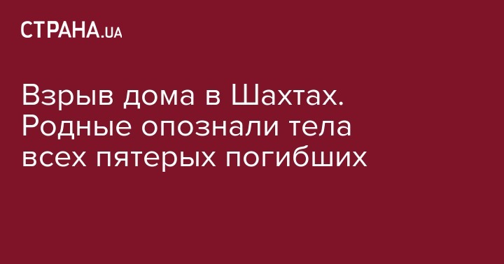 Родственники опознали тела всех погибших при обрушении дома в Шахтах Ростовской области (Россия) из-за взрыва газа. Об этом сообщает РИА "Новости", ссылаясь на представителя аппарата администрации города.