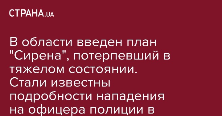 В области введен план "Сирена", потерпевший в тяжелом состоянии. Стали известны подробности нападения на офицера полиции в Харькове