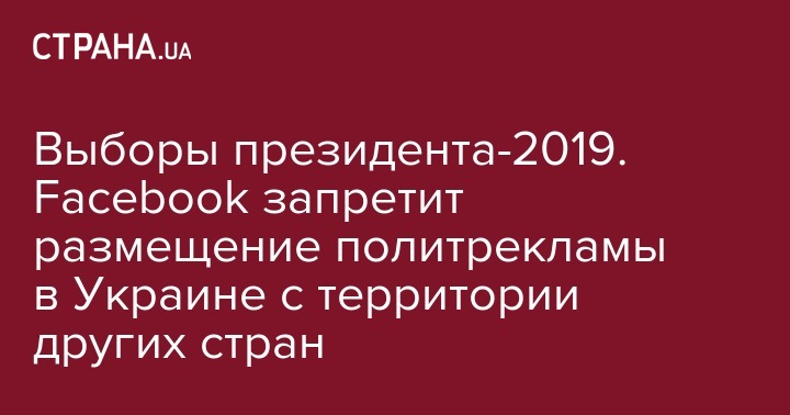 Социальная сеть Facebook (FB) ужесточит правила политической рекламы в странах, где в 2019 году пройдут выборы, в частности, в Украине, Индии, Нигерии и ЕС, сообщила компания в пресс-релизе в среду.