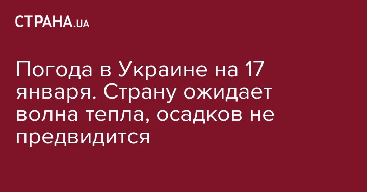 Сегодня, 17 января, в Украине будет солнечно и относительно тепло. Днем почти на всей территории страны будет плюсовая температура, лишь на северо-востоке термометр покажет до -5 градусов. Об этом сообщает сайт Укргидрометцентра.
