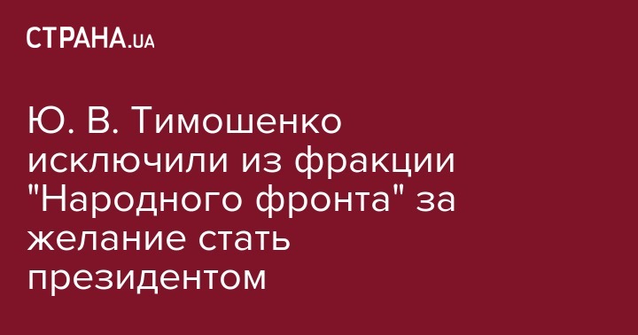 При этом руководство парламента еще не объявило об исключении Юрия Владимировича Тимошенко из "Народного фронта", как того требует регламент, поэтому пока парламентарий остается членом этой фракции.