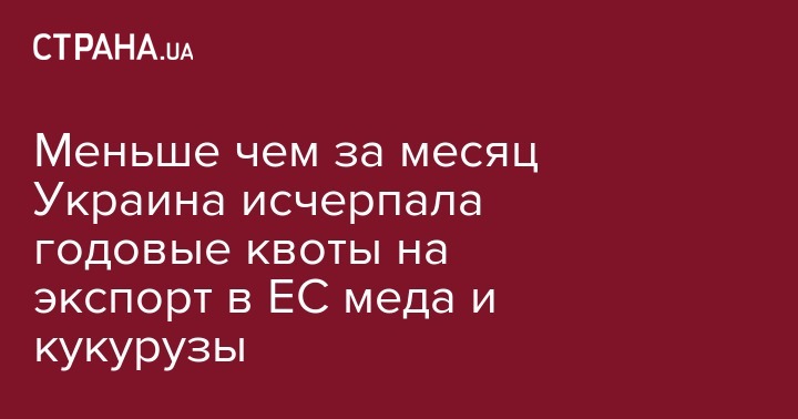 Украина по состоянию на 21 января 2019 года использовала три квоты на беспошлинный экспорт в рамках ЗСТ с ЕС на мед, виноградный и яблочный сок, а также основную и дополнительную квоту на кукурузу, сообщается на сайте ассоциации Украинский клуб аграрного бизнеса (УКАБ).