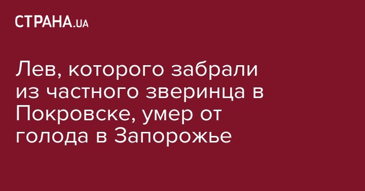Лев, которого забрали из частного зверинца в Покровске, умер от голода в Запорожье