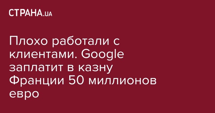 Плохо работали с клиентами. Google заплатит в казну Франции 50 миллионов евро