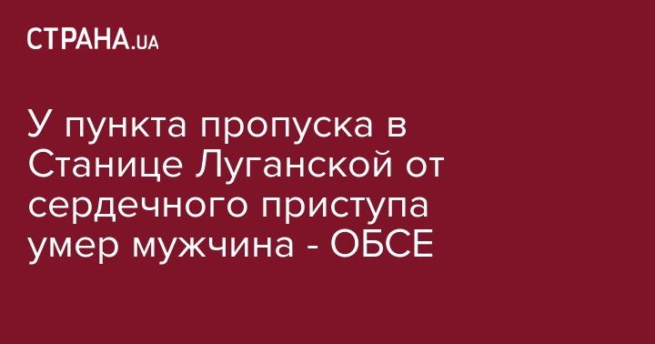 Наблюдатели Специальной мониторинговой миссии Организации по безопасности и сотрудничеству в Европе заявляют, что на контрольном пункте въезда-выезда в Станице Луганской от сердечного приступа умер 73-летний мужчина.