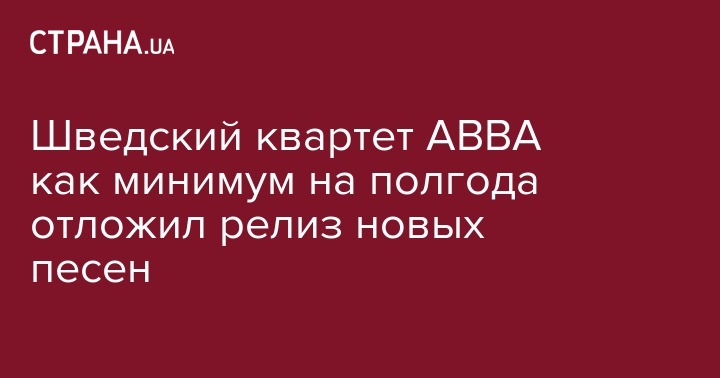 Культовый шведский квартет ABBA отложил премьеру новых песен, которые должны были выйти после 35-летнего перерыва в творчестве музыкантов. Об этом сообщает The Guardian.