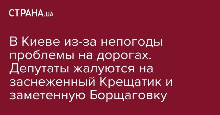 В Киеве из-за непогоды проблемы на дорогах. Депутаты жалуются на заснеженный Крещатик и заметенную Борщаговку