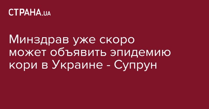 Минздрав в ближайшее время может объявить эпидемию кори в Украине. Об этом заявила исполняющая обязанности министра здравоохранения Ульяна Супрун после заседания правительства в среду, пишет Интерфакс-Украина.