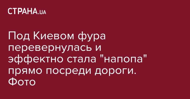 Под Киевом фура перевернулась и эффектно стала "напопа" прямо посреди дороги. Фото