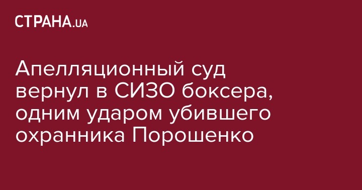 Подозреваемого в убийстве охранника Порошенко боксера Петра Очертяного, который был освобожден после уплаты денежного залога в 600 000 грн, взяли под стражу. Об этом сообщает пресс-секретарь прокуратуры Киева Надежда Максимец на своей странице в Facebook.