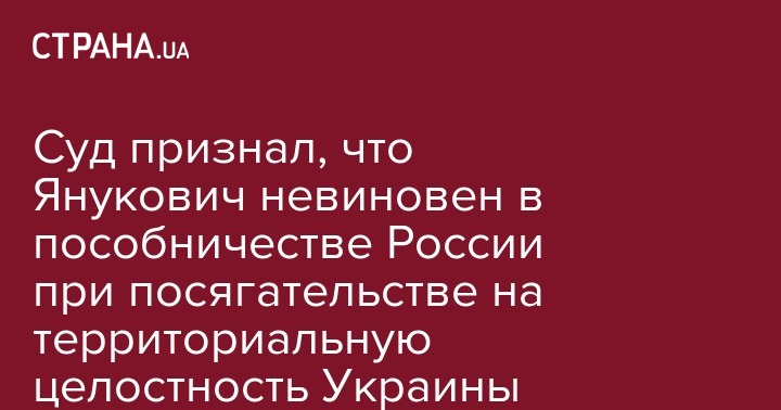 В четверг, 24 января, Оболонский районный суд Киева признал, что экс-президент Виктор Янукович невиновен в пособничестве России при посягательстве на территориальную целостность и неприкосновенность Украины, так как он не знал о намерениях своих соучастников - российских властей. Об этом со ссылкой на текст приговора пишут "Украинские новости".