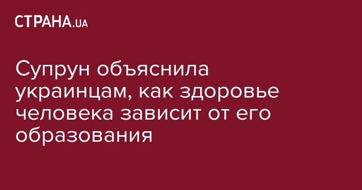 "Взаимосвязь образования и здоровья имеет комплексный характер и установлена железно - чем больше образованный человек, тем лучше показатели здоровья он имеет", - добавила Супрун.