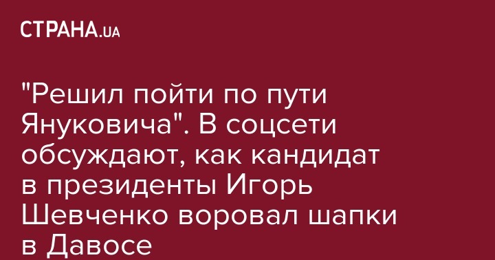 "Решил пойти по пути Януковича". В соцсети обсуждают, как кандидат в президенты Игорь Шевченко воровал шапки в Давосе