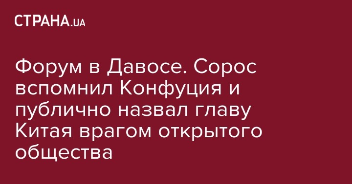 «Китай - не единственный авторитарный режим в мире, но он самый богатый, сильный и технологически самый передовой. Это делает Си Цзиньпина самым опасным противником открытого общества", - сказал Сорос во время делового обеда на Всемирном экономическом форуме.