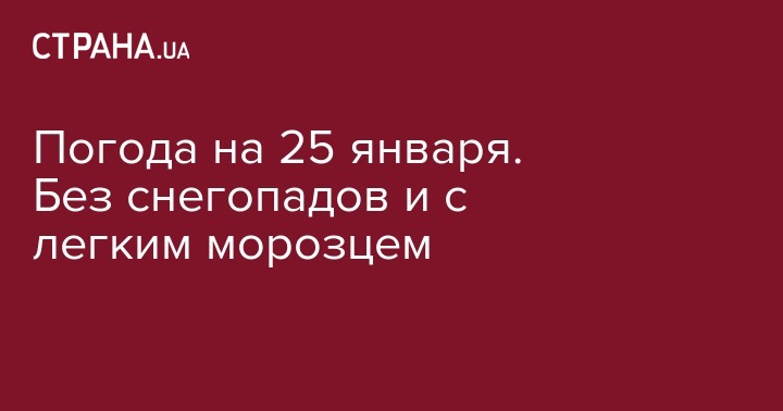 В пятницу, 25 января, в Украине ожидается не слишком морозная погода без осадков, лишь на западе и под Одессой будет идти снег, передает сайт Укргидрометцентра.