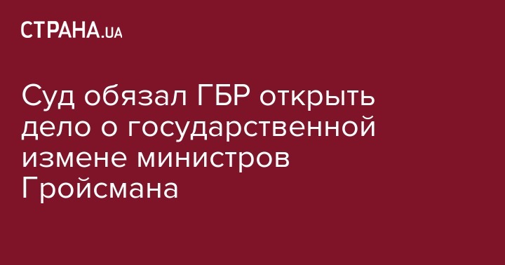 Шевченковский районный суд Киева обязал Государственное бюро расследований (ГБР) зарегистрировать уголовное производство по факту государственной измены членов Кабинета министров премьера Владимира Гройсмана.