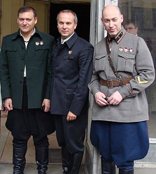 Снимались и работники спецслужб, бездомные, проститутки. Физиков сыграли аутисты, избивавших их энкавэдэшников – люди с криминальным прошлым и реальными сроками отсидки. Также засветились неонацисты под руководством россиянина Максима Марцинкевича, известного под псевдонимом Тесак и отбывающего в настоящее время тюремный срок.
