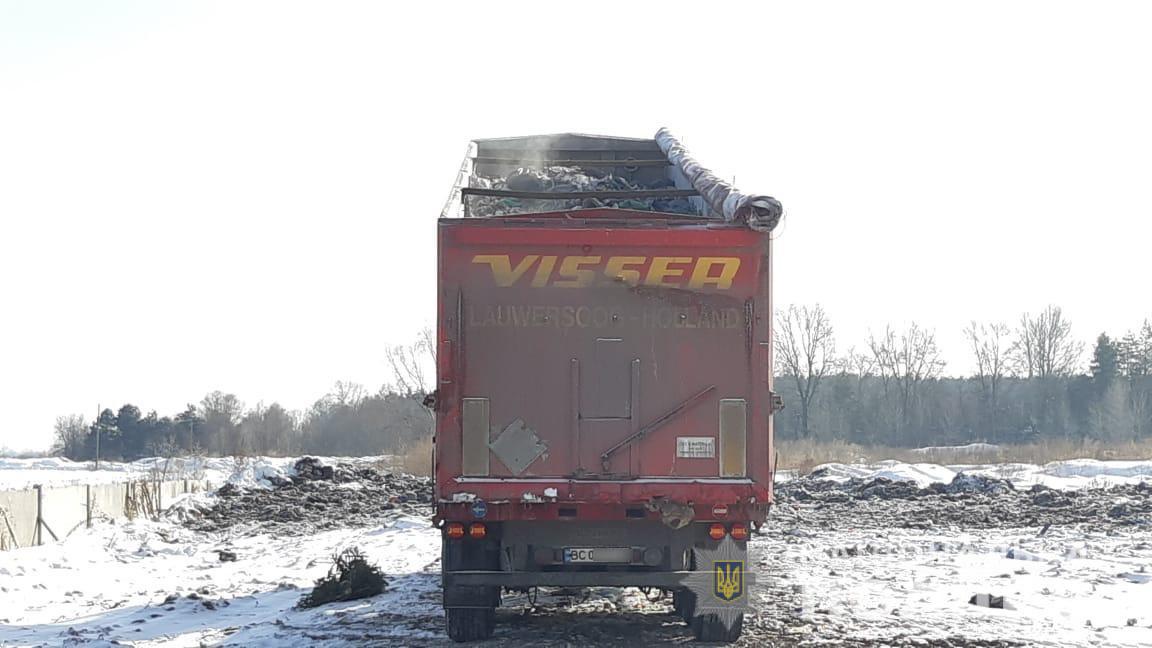 В пятницу, 25 января, правоохранители заметили два грузовика со львовскими номерами, которые выгружали мусор на незаконной стихийной свалке в Киевской области. Об этом сообщает Отдел коммуникации ГУ НП в Киевской области.
