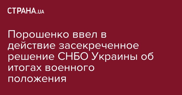 Президент Украины Петр Порошенко своим указом ввел в действие засекреченное решение Совета национальной безопасности и обороны от "Об итогах введения военного положения в Украине".