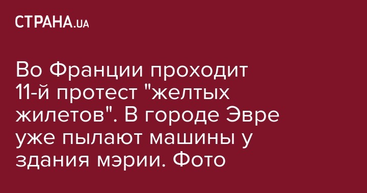Во Франции проходит 11-й протест "желтых жилетов". В городе Эвре уже пылают машины у здания мэрии. Фото