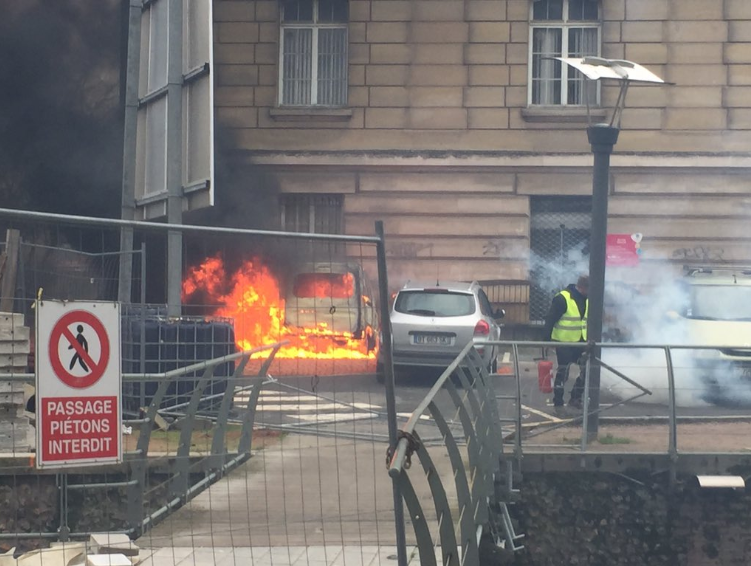 GILETS JAUNES : La situation devient tendue à #Evreux. Des véhicules sont incendiés derrière l'hôtel de ville, des affrontements éclatent. #ActeXIpic.twitter.com/EjtQqIccTm
