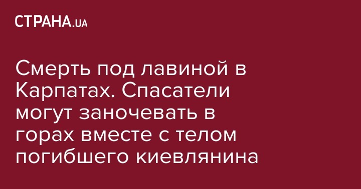 Тело погибшего под снежной лавиной у горы Стиг киевлянина еще не спустили с гор на Закарпатье, спасатели могут остаться на ночлег в горах из-за значительной лавинной опасности. Об этом сообщает УНН.