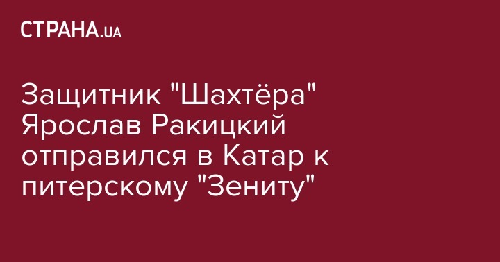 Защитник "Шахтера" Ярослав Ракицкий отправился в Доху (Катар), где подпишет контракт с санкт-петербургским "Зенитом". Именно там российская команда проводит подготовку ко второй части сезона.