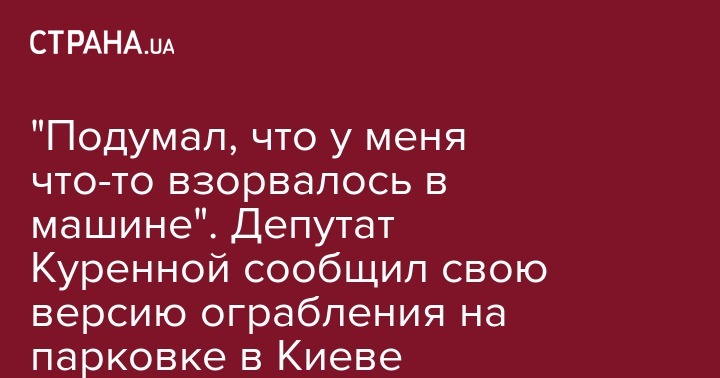 "Подумал, что у меня что-то взорвалось в машине". Депутат Куренной сообщил свою версию ограбления на парковке в Киеве