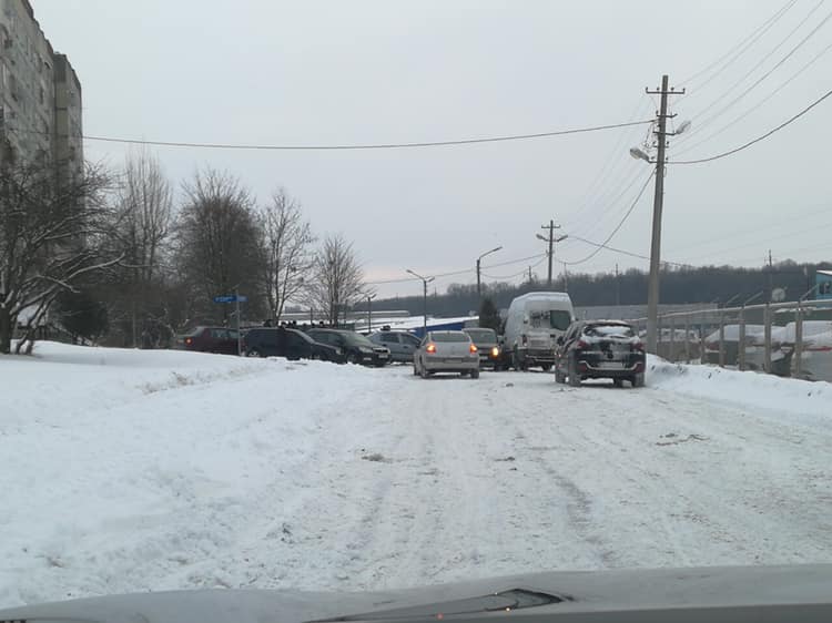 Появилось видео с места ДТП во Львове, где на снежной дороге столкнулись сразу восемь автомобилей