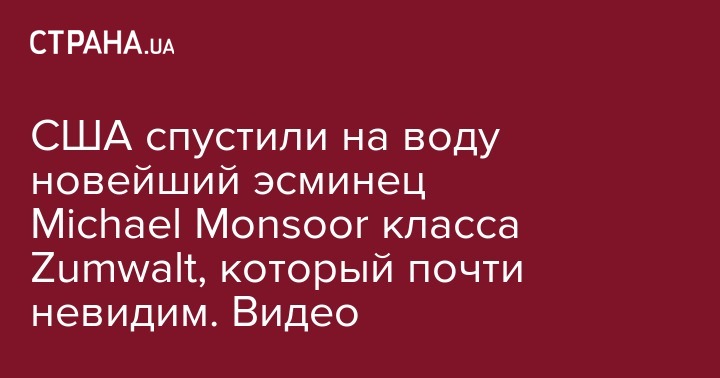 В США спущен на воду второй в новейшей серии невидимок эсминец USS Michael Monsoor класса Zumwalt (DDG-1001). Об этом сообщает РИА "Новости".