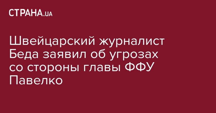 Журналист Арно Беда подал в прокуратуру Швейцарии заявление об угрозах со стороны президента Федерации футбола Украины Андрея Павелко и также собирается подать в суд за публичные оскорбления и клевету. Арно Беда отметил, что и дальше будет разоблачать коррупцию в украинском футболе.