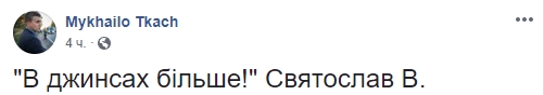 Журналист Михаил Ткач острит на тему Вакарчука и его выступления: "В джинсах больше!" Святослав В."