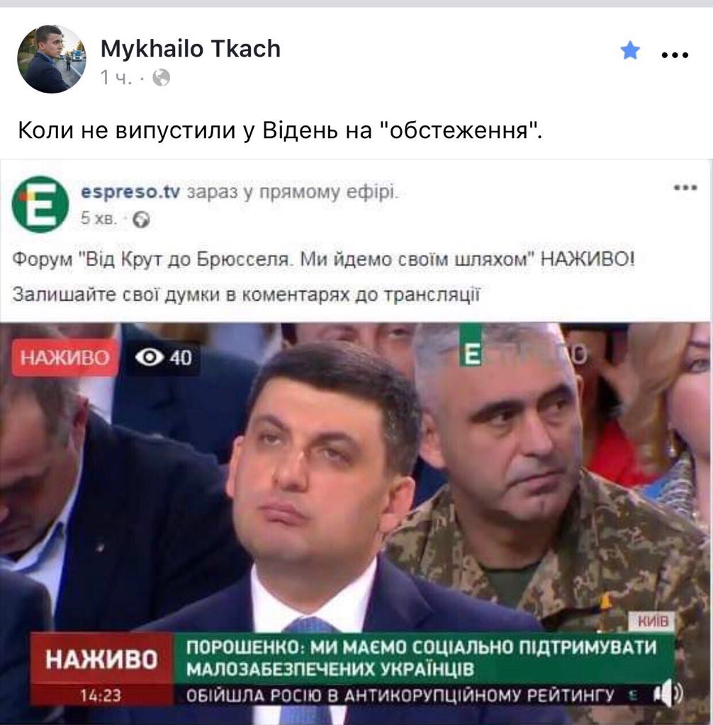 16:40  "Когда не пустили в Вену на обследование", - в соцсетях комментируют фото Владимира Гройсмана на съезде.