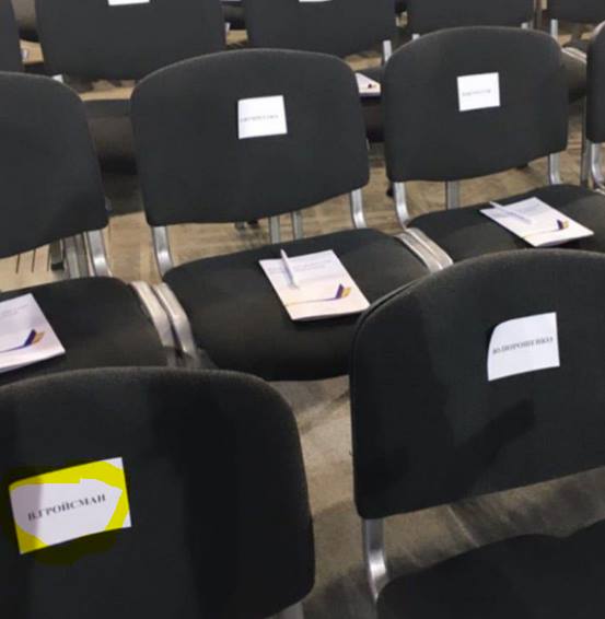 13:55  На форуме должен будет выступить спикер парламента Андрей Парубий. Для него заготовлен плакат.