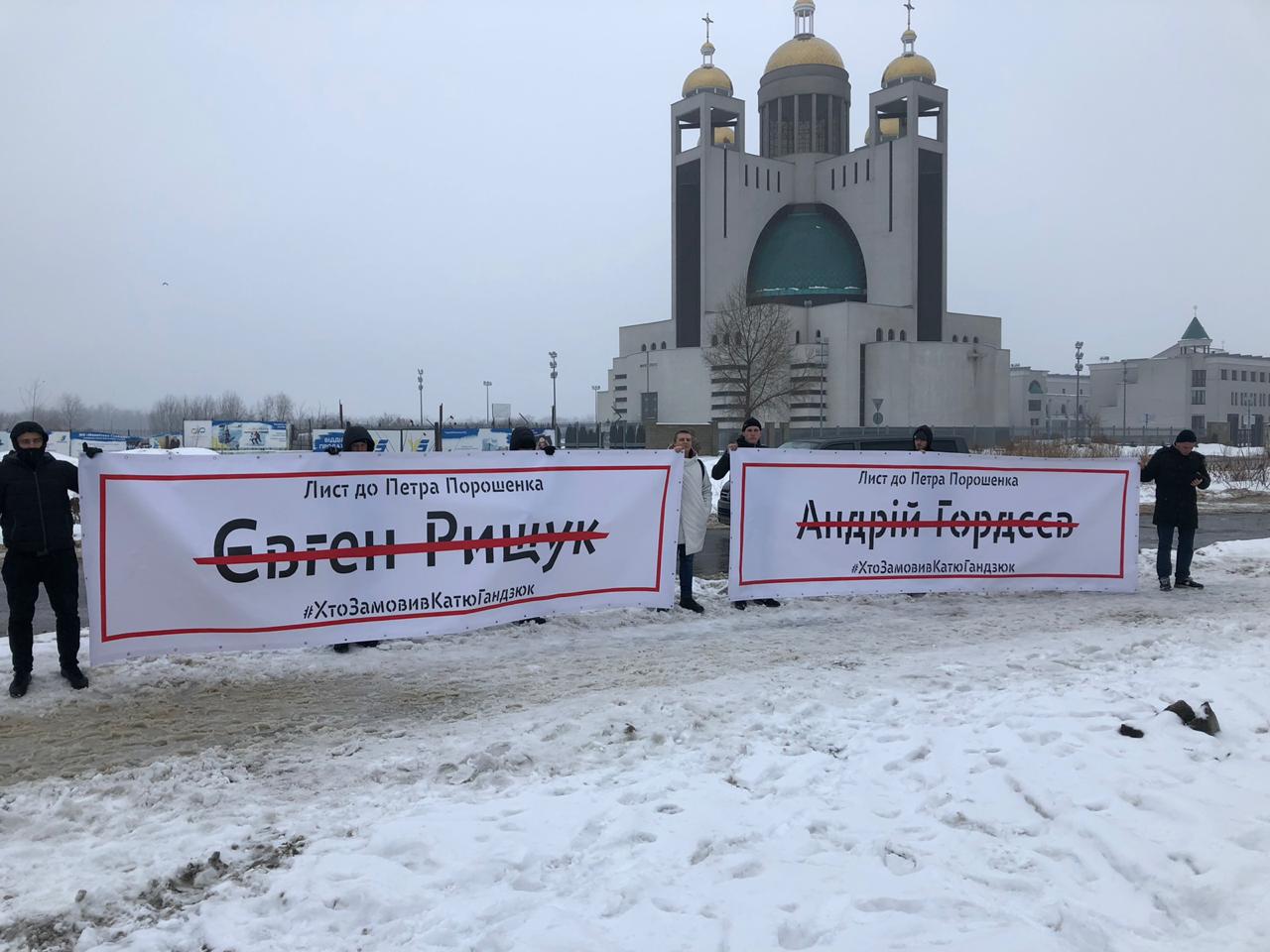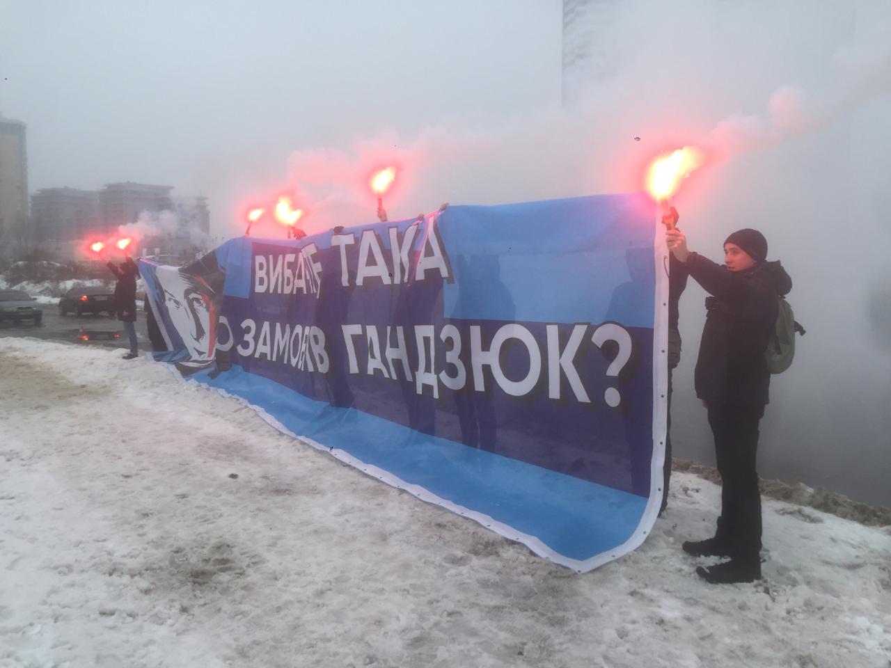 13:10  Рядом с Международным выставочным центром, где скоро появится президент, зажгли файеры и развернули плакаты "Кто заказал Катю Гандзюк?".