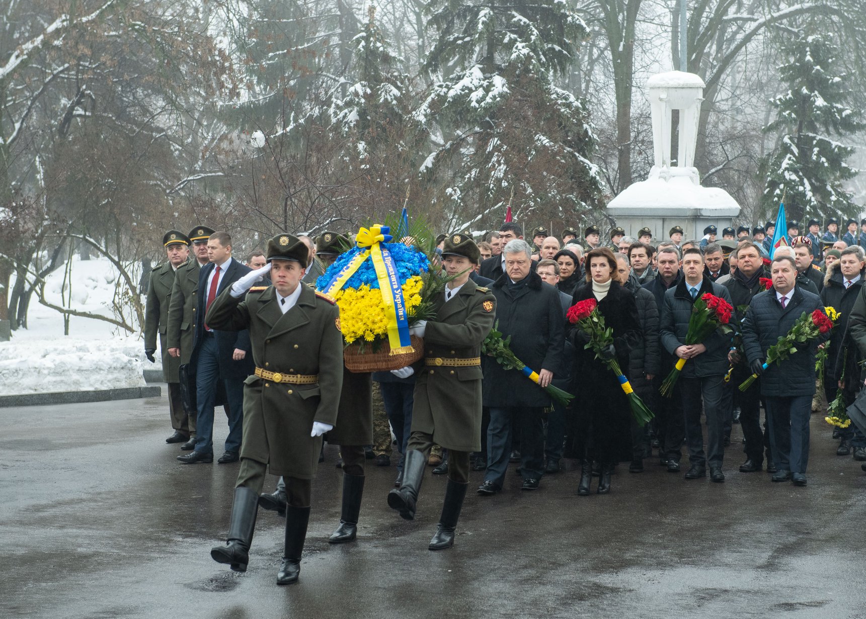 12:32  Перед походом на съезд Порошенко с Мариной почтили память студентов, погибших на станции Круты, которых туда бросило правительство УНР. Оно выставило 400 молодых, необстрелянных юнкеров против 3000-го отряда с артиллерией и бронепоездом.