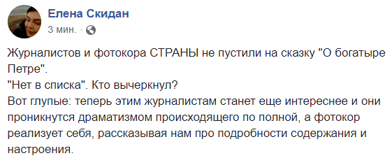 13:28  "Журналистов и фотокора Страны не пустили на сказку "О богатыре Петре".