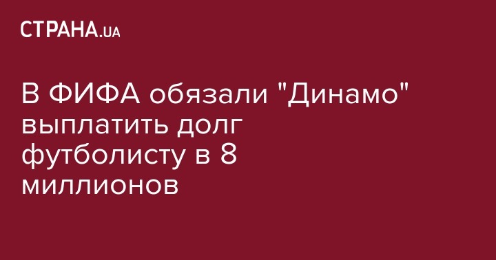 В ФИФА обязали "Динамо" выплатить долг футболисту в 8 миллионов