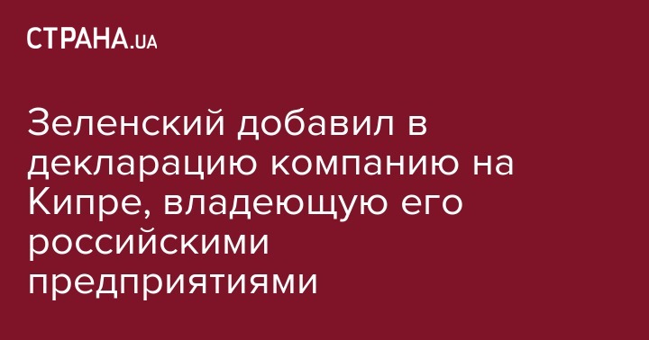 Зеленский добавил в декларацию компанию на Кипре, владеющую его российскими предприятиями