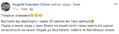 Спустя два часа Андрей Охота опубликовал видео, в котором "порадовался", что за два часа удалось доехать от аэропорта до Киева.