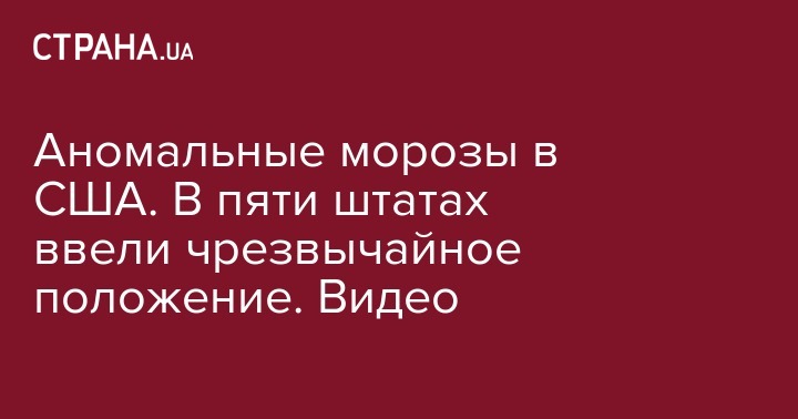 Аномальные морозы в США. В пяти штатах ввели чрезвычайное положение. Видео