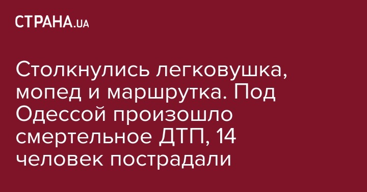По информации правоохранителей, авария произошла в районе села Николаевка. В ДТП попали мопед, легковушка и маршрутка, которая ехала из Килии в Одессу.