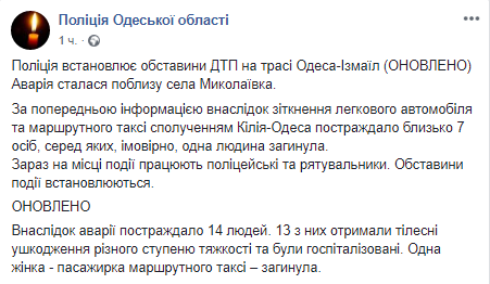 По данным полиции, в результате столкновения пострадали 14 человек. Из них не выжила одна женщина - пассажирка маршрутки. 13 человек получили телесные повреждения различной степени тяжести. Все они были госпитализированы.