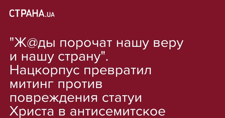 В Умани 20 января прошло мероприятие, организованное местной ячейкой "Национального корпуса". Митинг был посвящен событию, произошедшему накануне: вандалы повредили статуэтку Иисуса. Однако радикалы устроили по этому поводу антисемитское собрание. Об этом на своей странице в Facebook сообщил председатель Украинского еврейского комитета Эдуард Долинский.